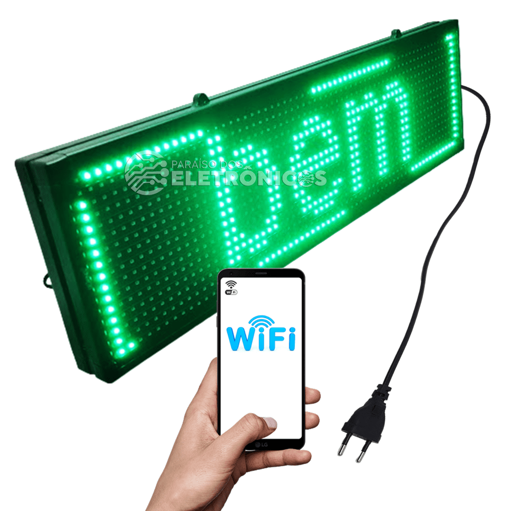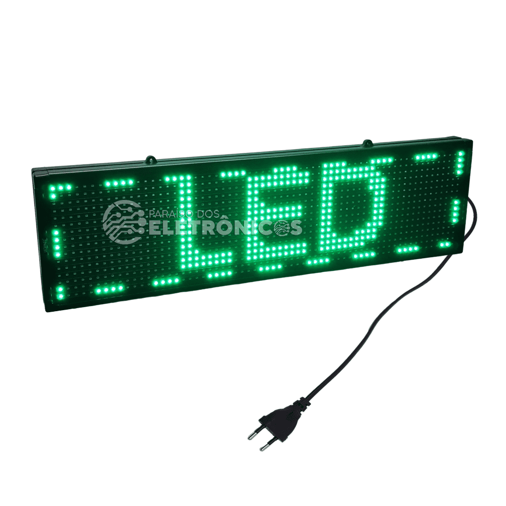 Painel letreiro de LED conta com apenas uma cor (não tem possibilidades de mudança de cor) que proporciona uma visualização de alta Intensidade e brilho dos LED.