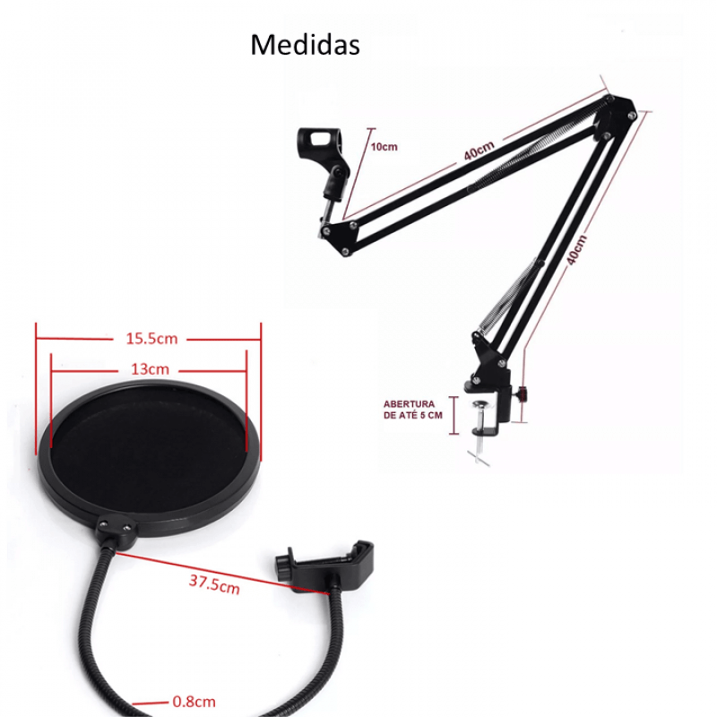 Pedestal Profissional Para Microfone Estúdio NB35 + Pop Filtro Para Barrar Ruídos