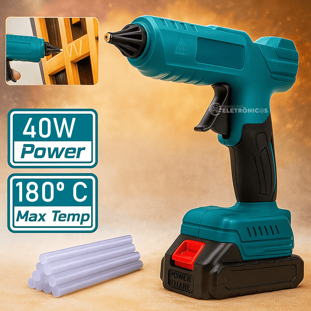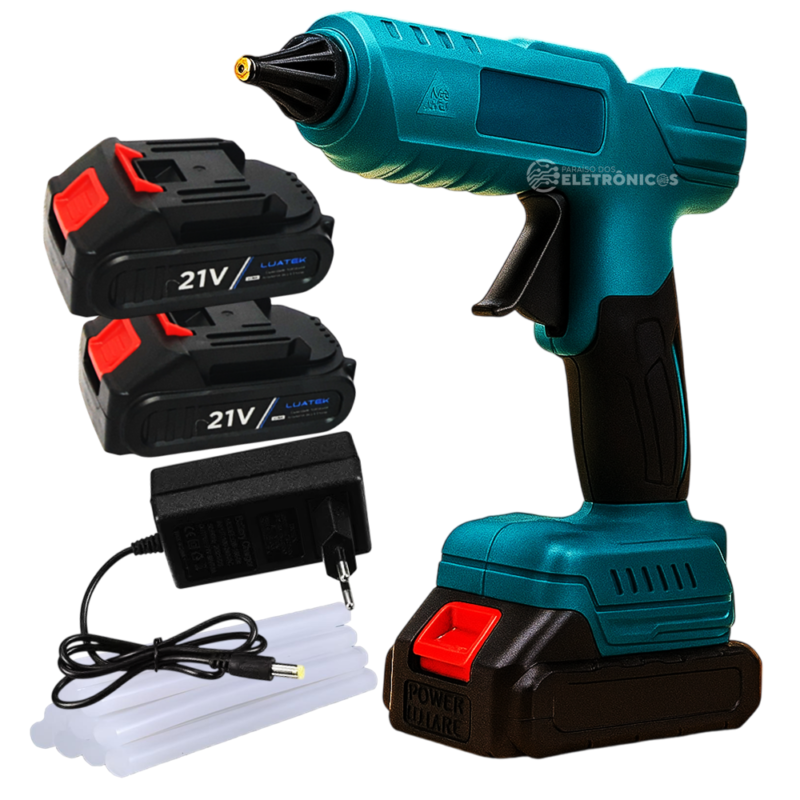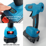 A Pistola de Cola Quente Profissional é uma ferramenta robusta e durável, projetada para simplificar o processo de colagem. Acompanha 2 potentes baterias de lítio de 21V e 2Ah (cada), oferecendo assim uma autonomia impressionante de uso contínuo, garantindo eficiência em projetos prolongados. Sua compatibilidade com voltagem bivolt amplia suas opções de uso em diferentes ambientes.