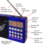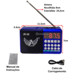 Rádio FM Portátil Com Bluetooth MP3 Entrada Pendrive e Cartão SD Bateria Recarregável