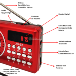 Rádio FM Portátil Com Bluetooth MP3 Entrada Pendrive e Cartão SD Bateria Recarregável