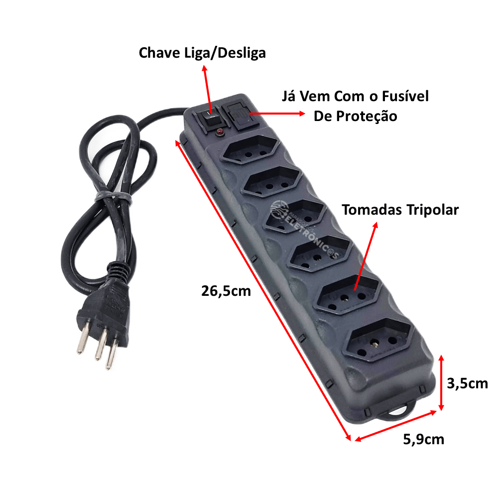 1 Régua Extensão Elétrica 6 Tomada 6TEX