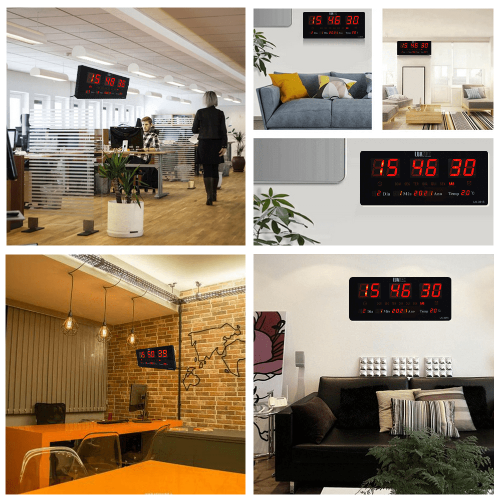 Relógio de parede digital grande para residências, academias, hospitais, igrejas, cafés, escritório, consultórios, enfim comercio em geral.