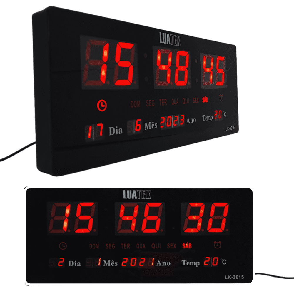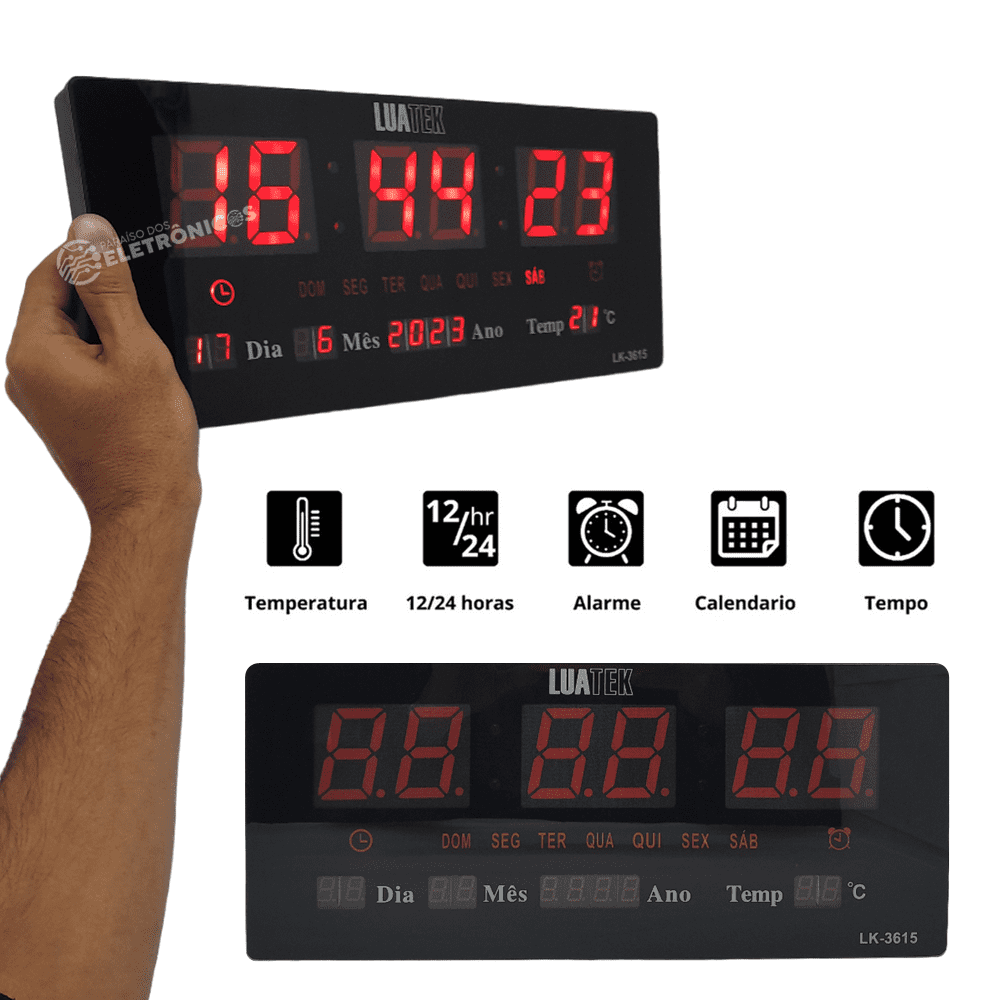 Relógio De Parede Digital Com Calendário, Alarme e Termômetro – LK3615