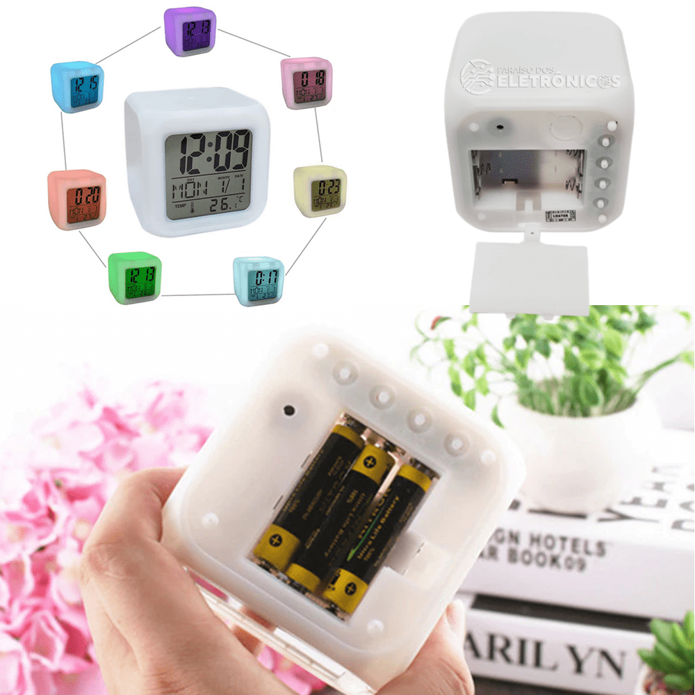 Relógio Digital Despertador De Mesa Cubo Colorido 7 LED Alarme