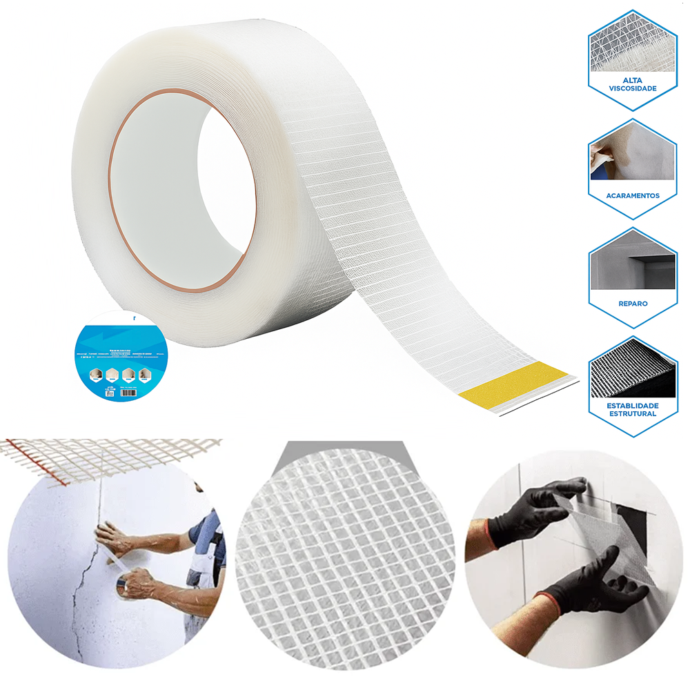 Rolo Tecido de Malha Autoadesiva Telada Fibra de Vidro Para Reparos Rachaduras Drywall 45mts - DJ08