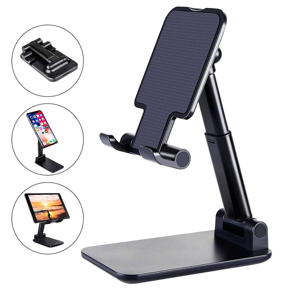 Suporte Celular ou Tablet Para Mesa Dobrável e Ajustável Resistente – Preto LE049