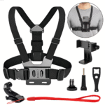Suporte Faixa Cinta Peitoral Peito Ajustável, compatível com todos os modelos de celulares/ Smartphone e Action câmeras 4K Sports Ultra HD e demais câmeras de ação. Compatibilidade Universal tanto para câmeras quanto para celulares.