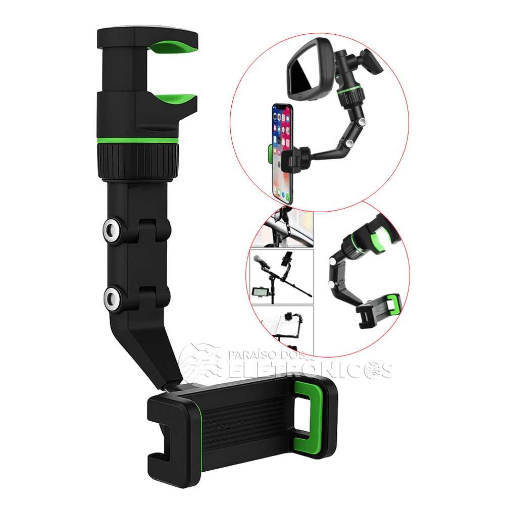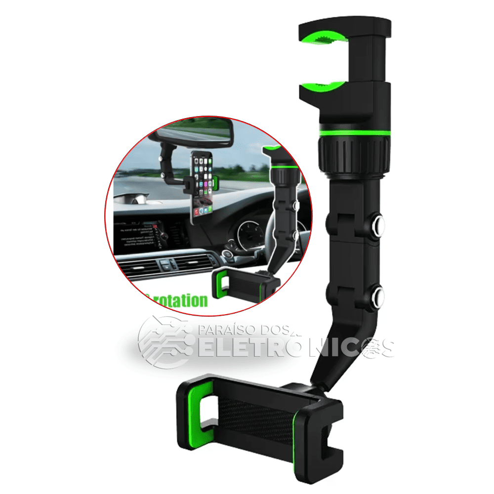 Suporte Universal de Celular Veicular 360° – Retrovisor, Multifuncional Premium