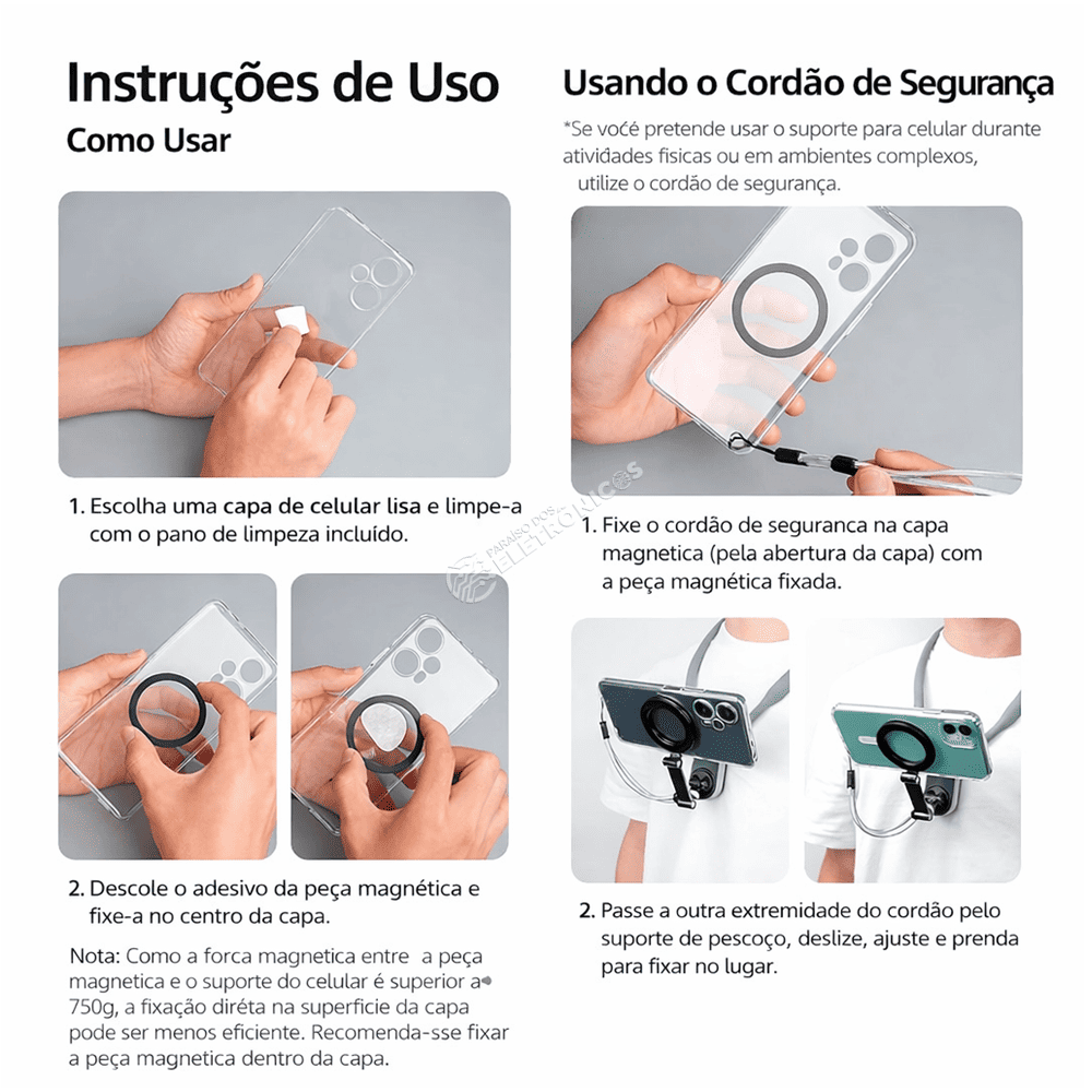 Suporte Smartphones Magnético Para Pescoço Ajustável e Ergonômico – MTG188