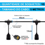 ATENÇÃO: Esse produto NÃO está incluso as lâmpadas, apenas o cabo de 5 metros com os soquetes.
