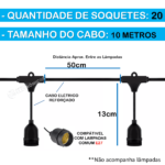 Varal de Luzes Cordão de Iluminação Com 10 Metros 20 Soquetes – 61178