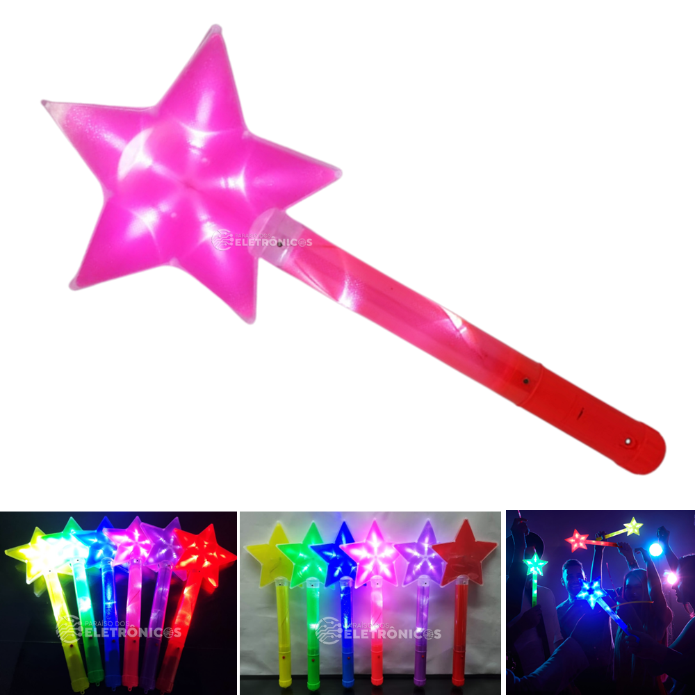 Varinha Estrela Mágica Bastão Led Brilhante Pisca Pisca Ideal Para Iluminar Sua Festa Balada.