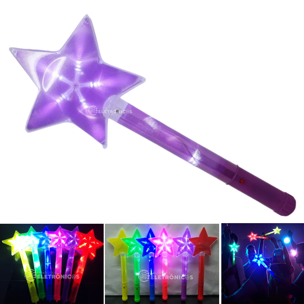 Bastão Varinha Mágica Estrela De Led Brilhante Pisca Pisca Ideal Para Iluminar Sua Festa Balada.