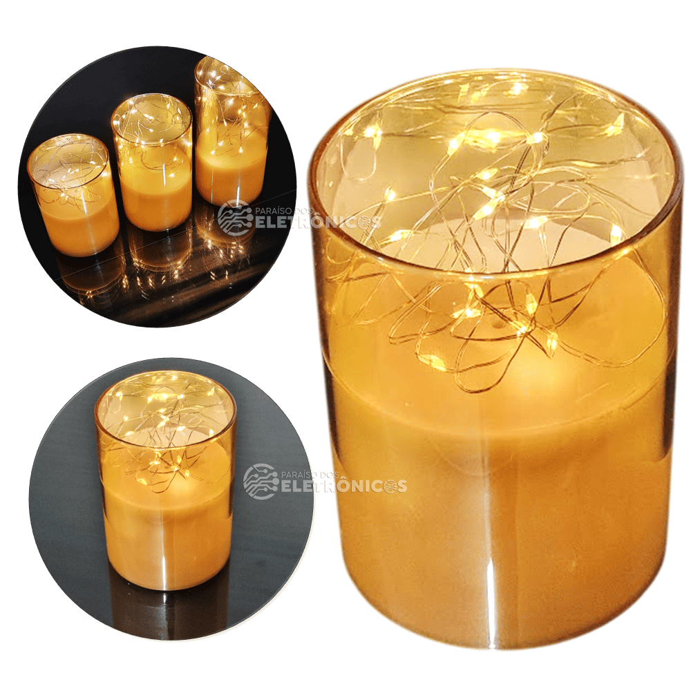 Transforme o ambiente da sua casa ou escritório com esta elegante vela decorativa com iluminação com fio fada de LED. Ideal para quem aprecia uma decoração vintage e sofisticada, essas velas criam uma atmosfera acolhedora e charmosa, perfeita para momentos especiais ou como presente criativo em datas comemorativas.