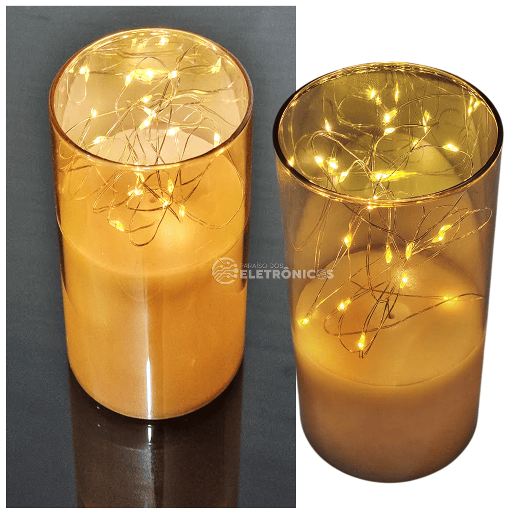 1 Vela LED 15cm Fio De Fada Luzes Cordão LED Vidro Champanhe – HM233